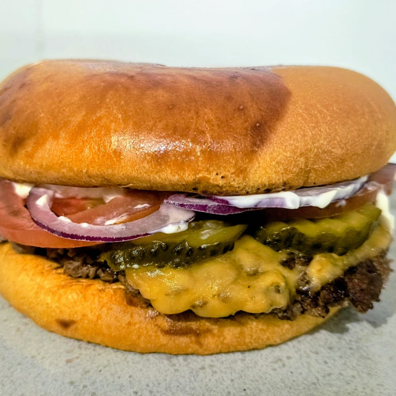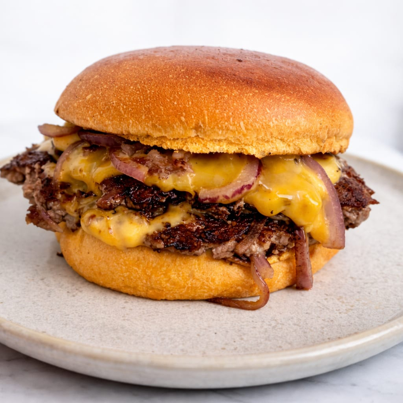 Smash Onion Duplo – Um lanche para quem não abre mão de potência e sabor. Dois smash burgers de 100g cada, perfeitamente selados, combinados com queijo prato derretido e cebola roxa chapeada, que traz um toque caramelizado irresistível. Tudo isso no pão de brioche macio, acompanhado do nosso molho especial da casa. Uma experiência dupla de sabor em cada mordida!