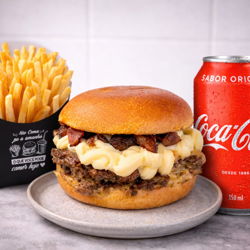 1 SMASH TRIPLO CATUPIRY BACON + 1 BATATA FRITA INDIVIDUAL +1 COCA LATA 350ML