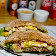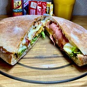 Frango, ovo, alface, tomate, molho especial, presunto, mussarela e catupiry