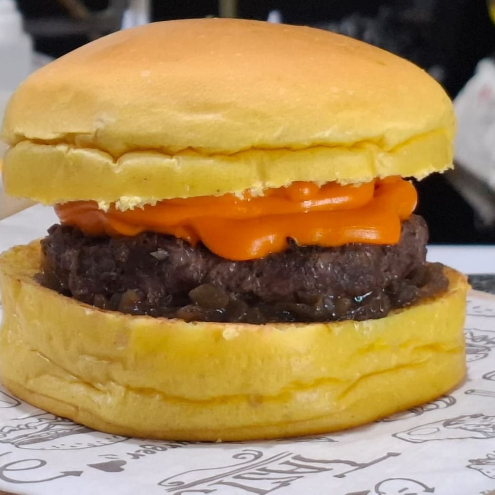 Blend de hambúrguer artesanal de 200 gramas, cebola caramelizada, cheddar cremoso no pão australiano.