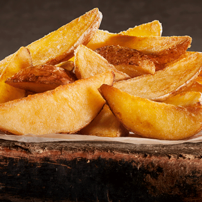 Deliciosa batata com corte rústico, crocante por fora e macia por dentro, além de nosso delicioso tempero, coberto com nosso creme de cheddar e bacon crocante.