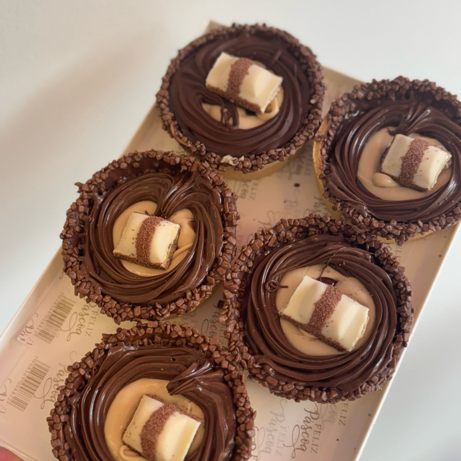 Massa de biscoito, creme de kinder, nutella e kinder bueno
