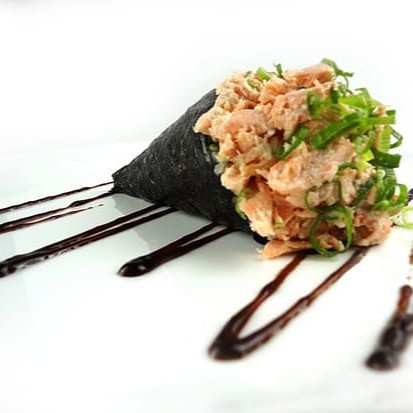 Temaki de salmão grelhado com cream cheese e cebolinha.