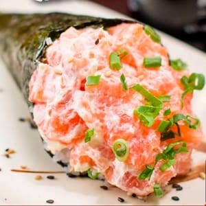Temaki de salmão em cubos, com cream cheese e cebolinha