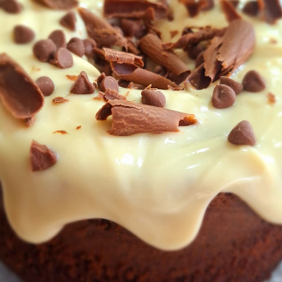 Para os amantes de chocolate esse bolo é divino. Cobertura Cremosa de brigadeiro e gotas de chocolate ao leite. Preparo manual com chocolate 50% cacau, sem conservantes, sem aromatizantes. Serve até 7 pessoas. Fatias generosas.