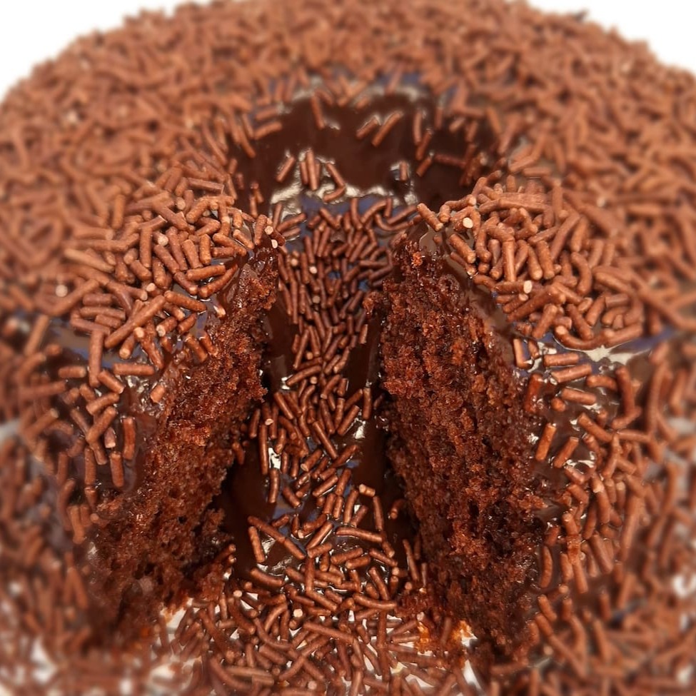 Massa preparada com chocolate 50 % cacau, sem conservantes e aromatizantes. Cobertura cremosa de brigadeiro com granulados. Serve até 7 pessoas, pedaços generosos