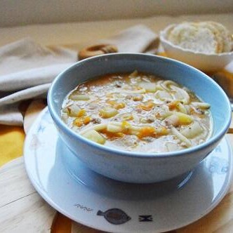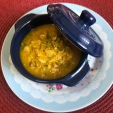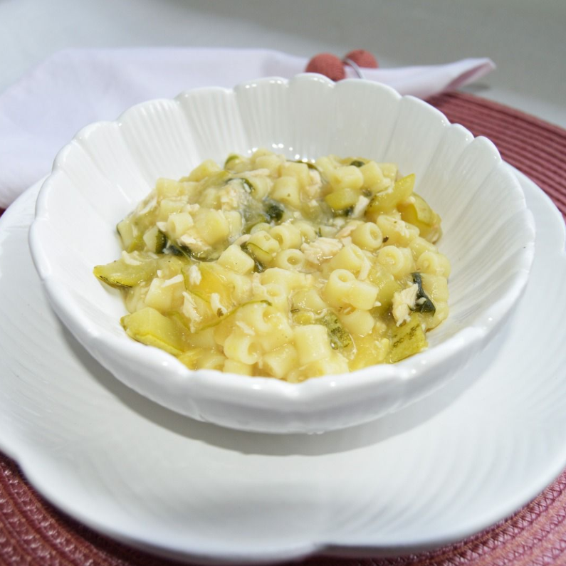 Sopa de frango, mandioca, abobrinha, espinafre e macarrão (200g). Produto congelado!
