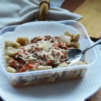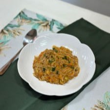 Macarrão cabelo de anjo a bolonhesa com abobrinha, cenoura e milho (200g). Produto congelado!