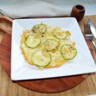 Pizza com massa de farinha de frango e recheio de mussarela abobrinha e alho (160g). Produto congelado!