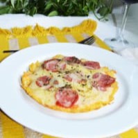 Pizza com massa de farinha de frango e recheio de mussarela, calabresa e cebola (160g). Produto congelado!