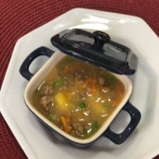 Sopa de feijão, carne moída, batata, chuchu e macarrão (200g). Produto congelado!