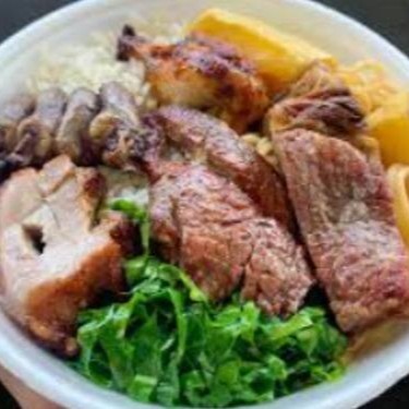 Arroz,dobradinha, farofa, refogado do Dia e salada do Dia.