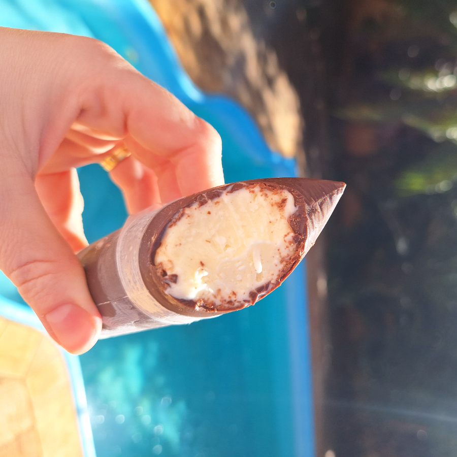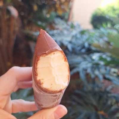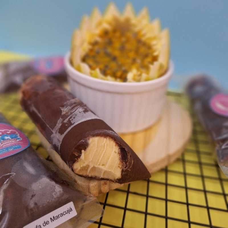 Geladinho super cremoso, feito com própria fruta, com aquele toque levemente azedinho e refrescante, e uma deliciosa casquinha de chocolate nobre.