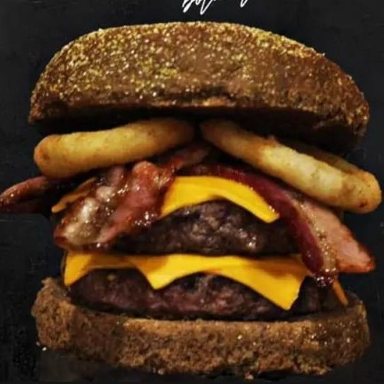 Pão australiano,2 hambúrguer suculentos 1 fatia de queijo cheddar derretido ,cebola caramelizada, 2 anel de cebola crocantes, 2 fatias bacon, e muito molho cheddar, um classico imbativel, delicia.