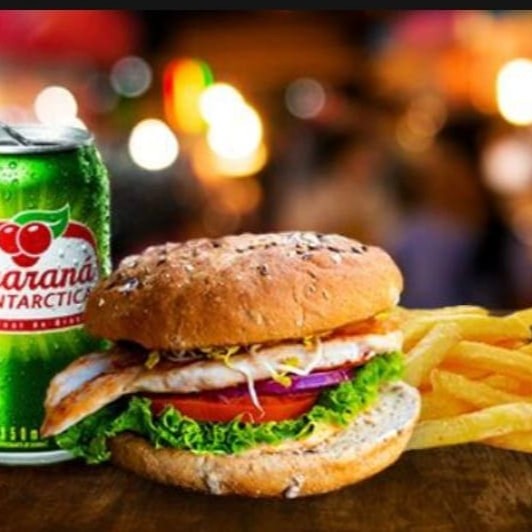 - Pão australiano +Hamburguer feito de filer de Frango + Fatias de bacon +Fatia demusarela + Fatias de queijo prato + -Molho barbecue. -Alface