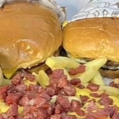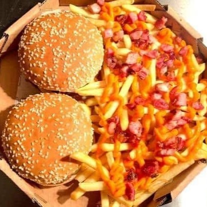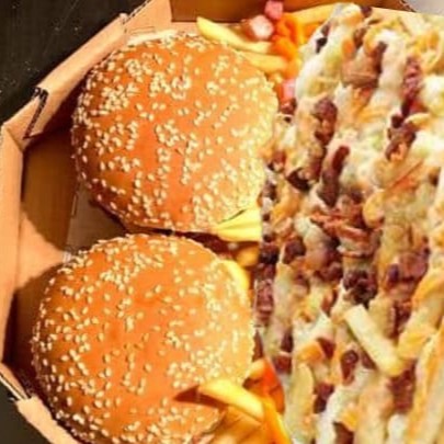 2 hambúrguer + porção de batata frita com Catupiry e bacon.