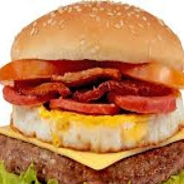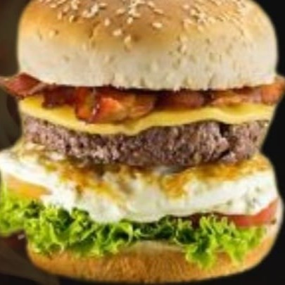 Pão de hamburguer bife industrializado fatia de queijo prato ovo bacon tomate alface molho da casa,uma verdadeira delicia!