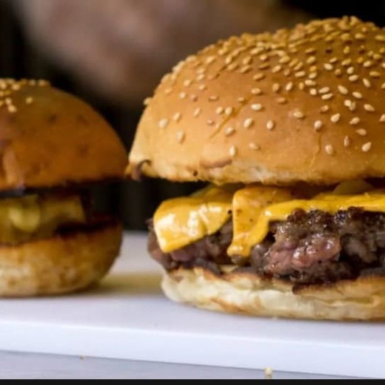 2 Doha burguer - hamburgue bovino 1 fatia de queijo cheddar 1 fatia de queijo prato +pão brioche +1 porção de batata +porção de bacon com cheddar