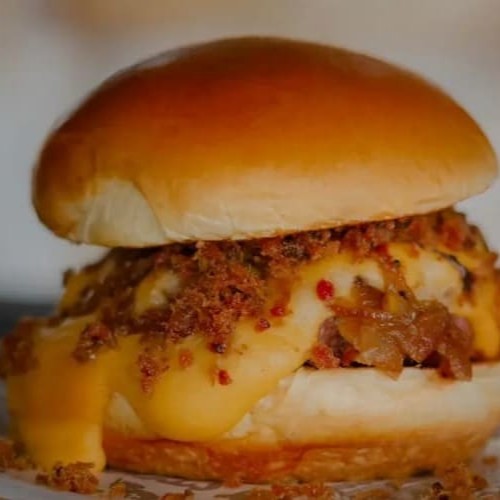 Doha Caramelizado', uma estrela de nossa categoria 'Burguers Artesanais'. Este prato é uma combinação saborosa e requintada de um hambúrguer suculento e perfeitamente grelhado, coberto por uma generosa camada de Cheddar derretido e cremoso, com um toque final de cebola caramelizada, que agrega um sabor adocicado e irresistível. Essa mistura harmoniosa de ingredientes promove uma experiência gastronômica rica e inigualável. Perfeito para os amantes de um bom hambúrguer com um toque gourmet.