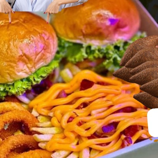 Dois hamburgueres artesanal doha salada, super suculentos,acompanhados de; 1 porção de anel de cebola crocantes 1 porção de kibe frito delicioso 1 porção de batata frita com cheddar cremoso e bacom crocante . Um combo completo,feito para dividir e aproveitar a dois. Sabor ,variedade e muito mais por um preço especial.vai resistir?