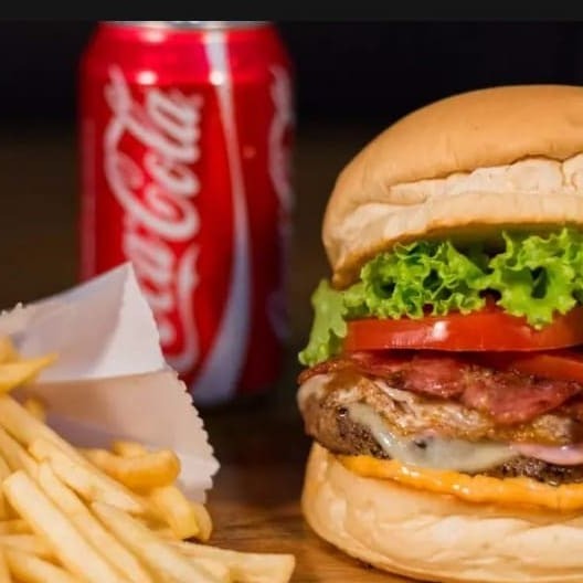 Hambúrguer artesanal no pao Brioche, com picles crocante, cebola , ketchup e mostarda Sabor classíco com um toque ácido. Acompanha 1 coca cola Lata.