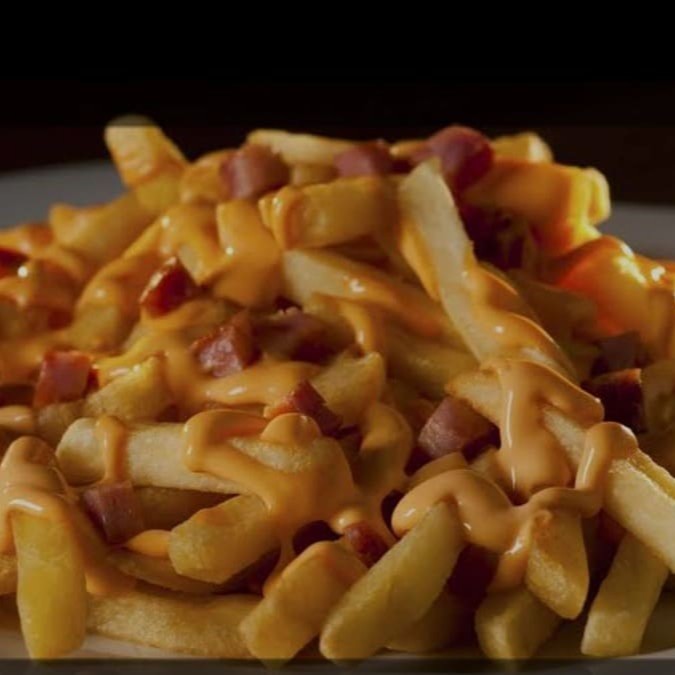 1 porção de batata Frita+ bacon em cubo e molho Cheddar.
