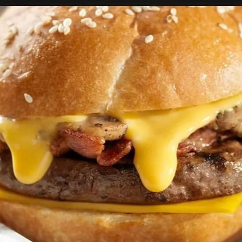 Pão brioche macio, hamburguer suculento,cheddar derretido e 3 fatias generosas de bacon crocante. Combinação perfeita!