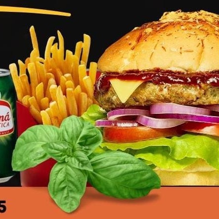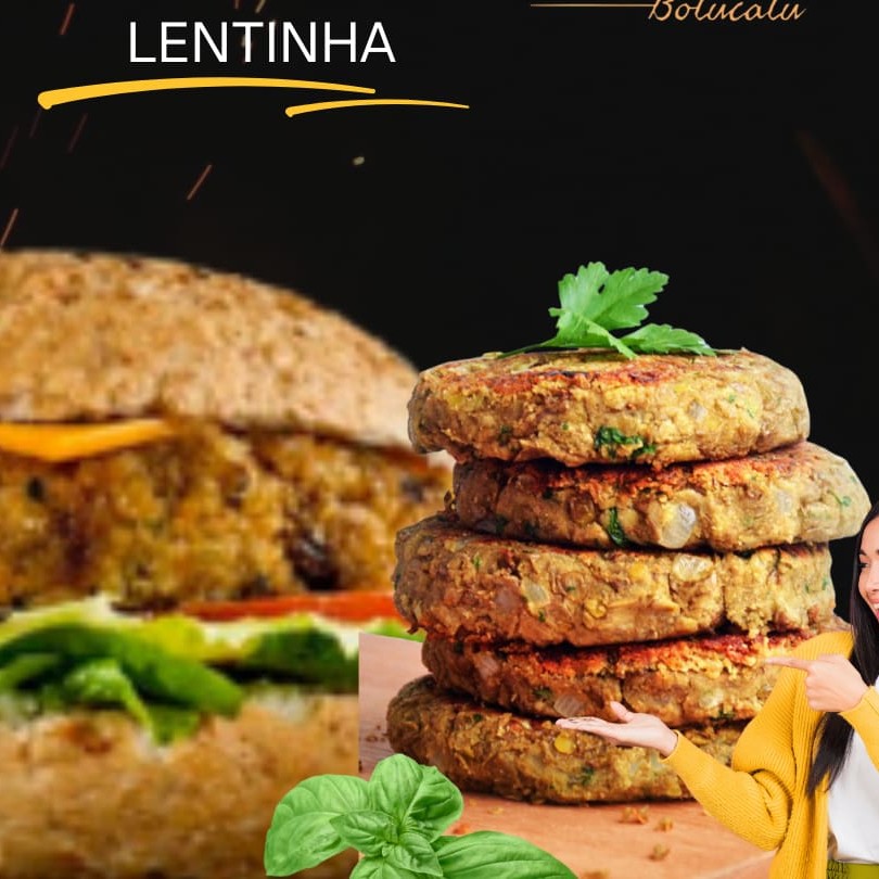 Pao de brioche+ hanburguer de lenntilha+ alface +rodelas de tomate +rodelas de cebola,1 fatia de queijo musarela,1 fatia de cheddar.