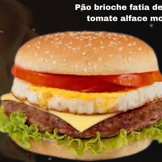 Pão brioche hamburguer de carne bovino fatia de queijo prato ovo Bacon tomate alface cebola maionese,uma verdadeira delicia!