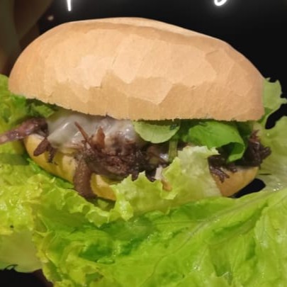 Doha Rib ;Simples mais perfeito. Hambúrguer feito de Costela Desfiada com pão Francês ,150g de costela desfiado ,25g de Mussarela, uma porção de Cebola caramelizada, Rúcula,e azeite a gosto.