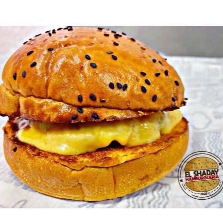 Pão, Hambúrguer 90g, Ovo, Queijo Prato e Molho El Shaday.