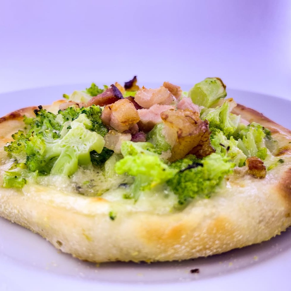 Mussarela, brócolis e bacon
