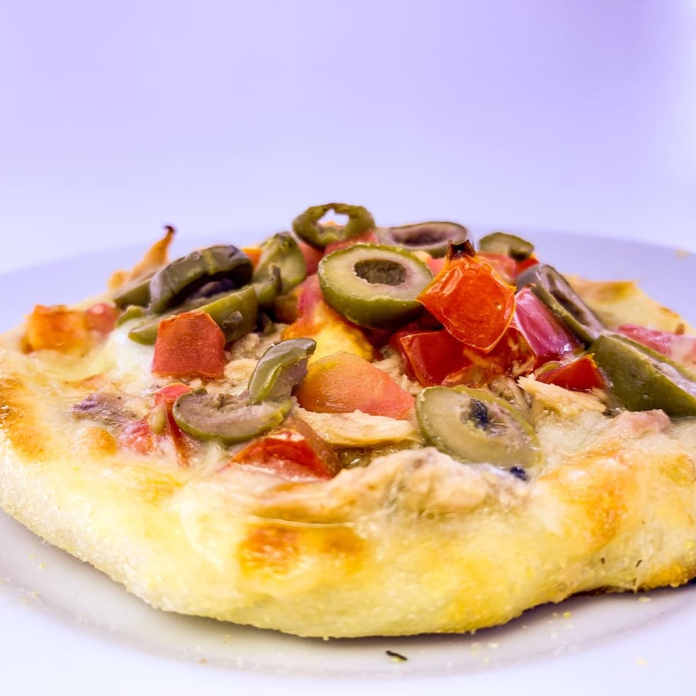 Mussarela, atum, tomate e azeitona