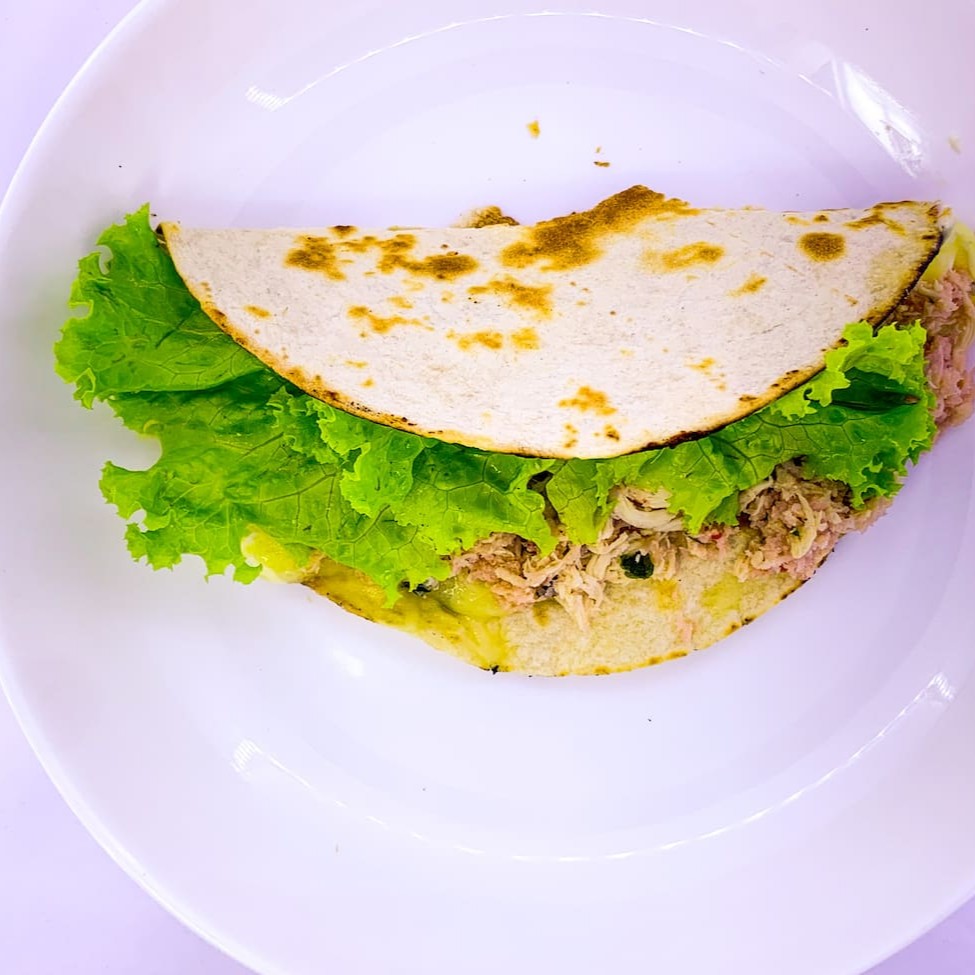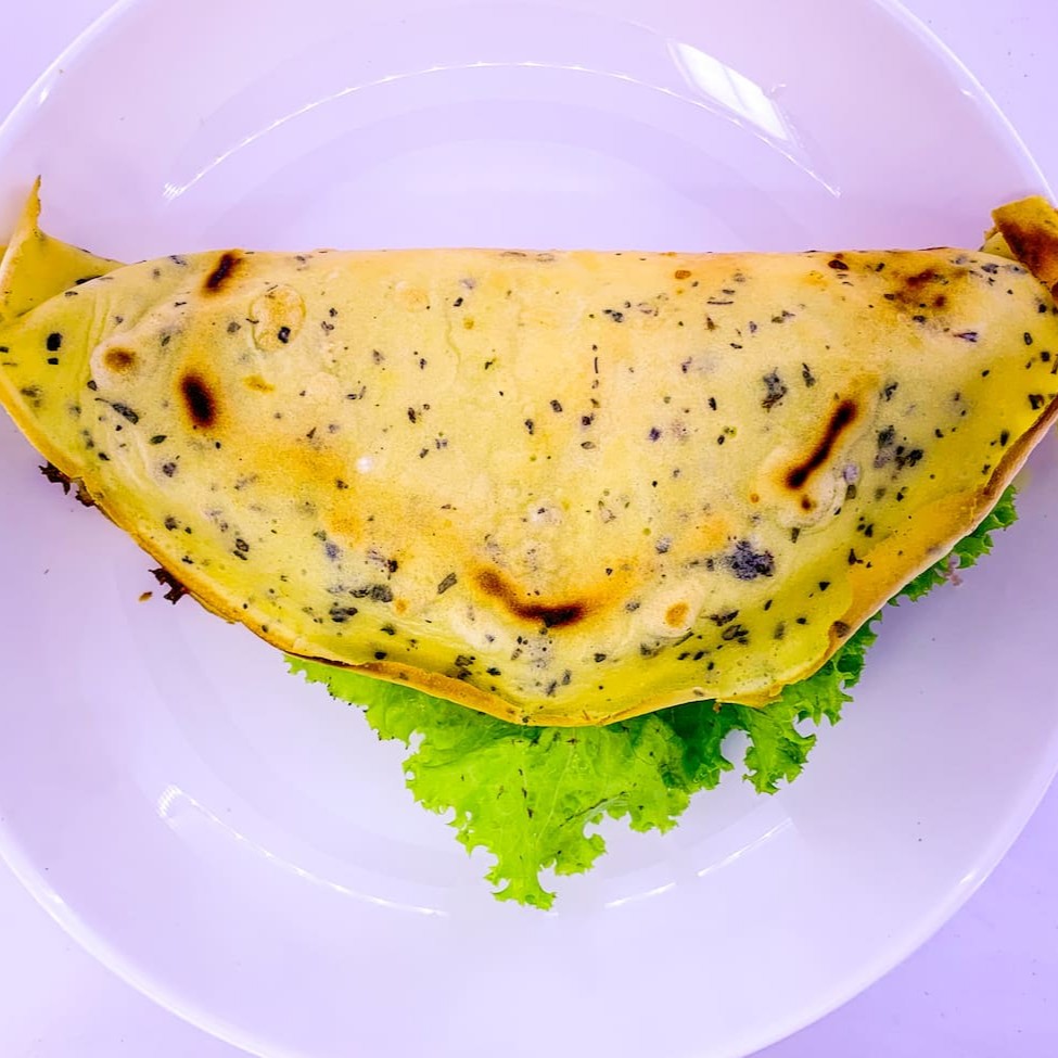 Massa composta por ovo e farinha de tapioca . Já incluso no recheio mussarela e Catupiry escolher alface ou rúcula.