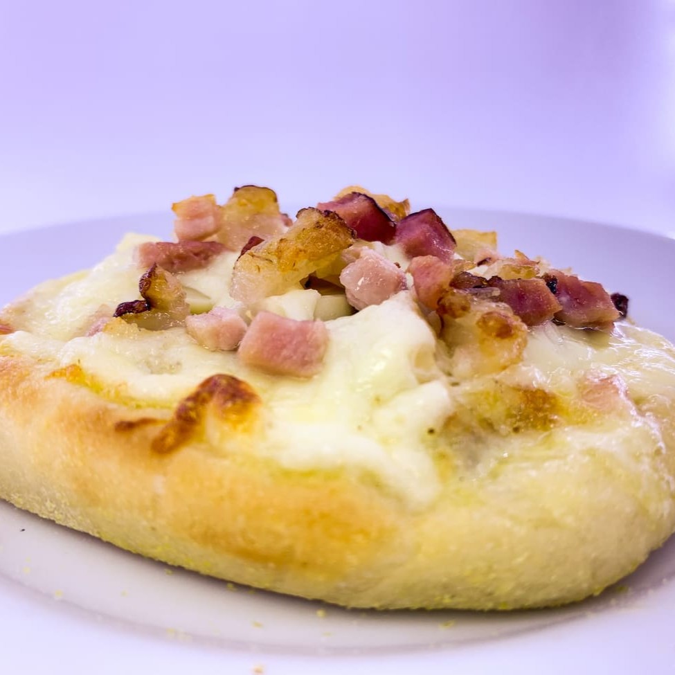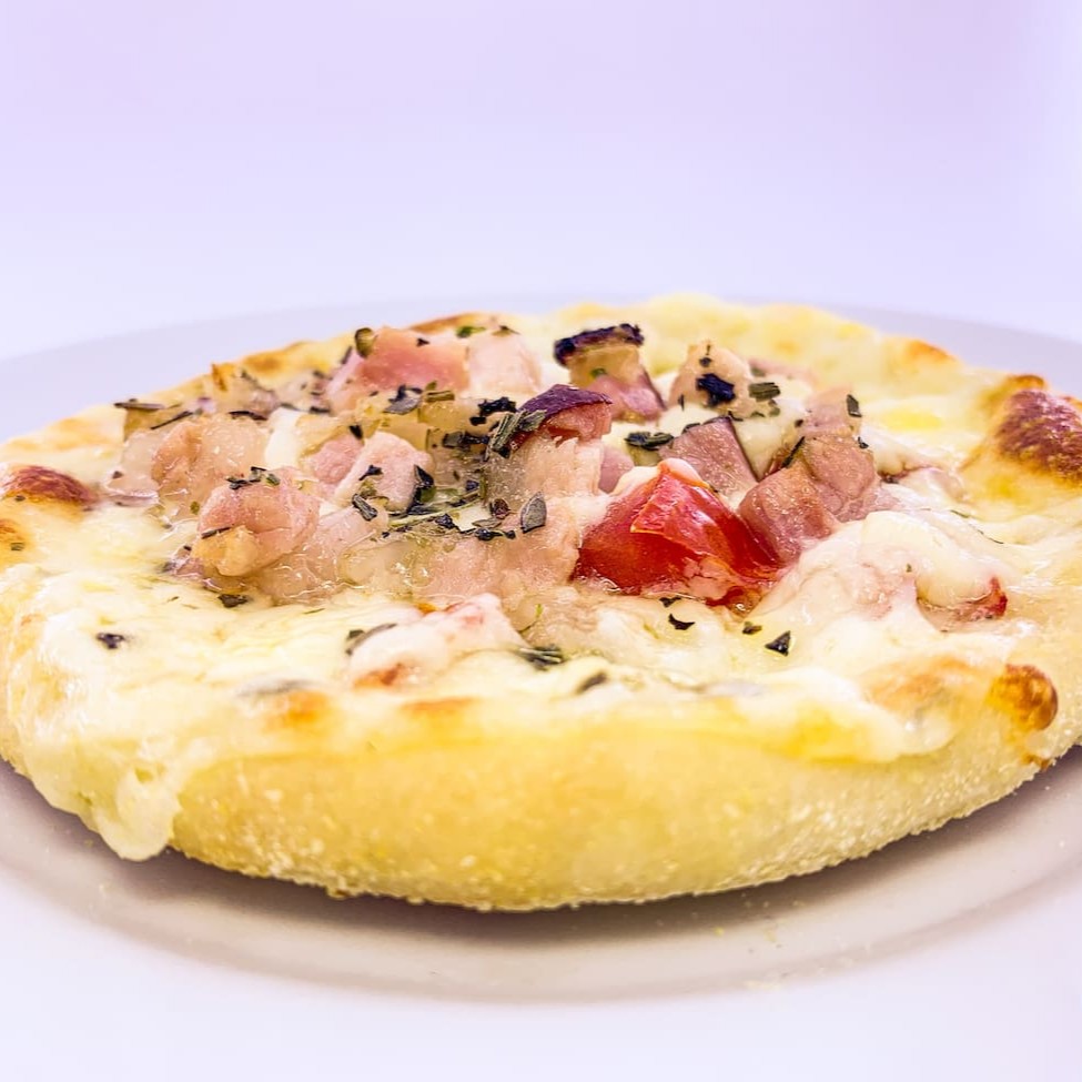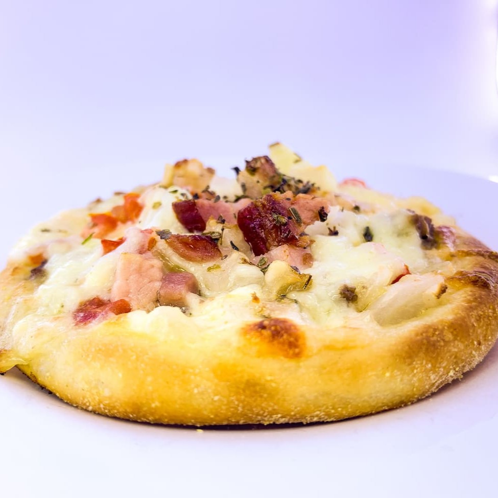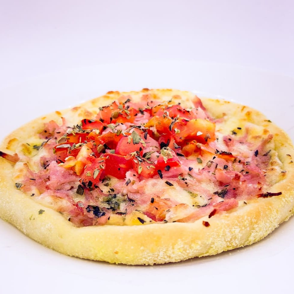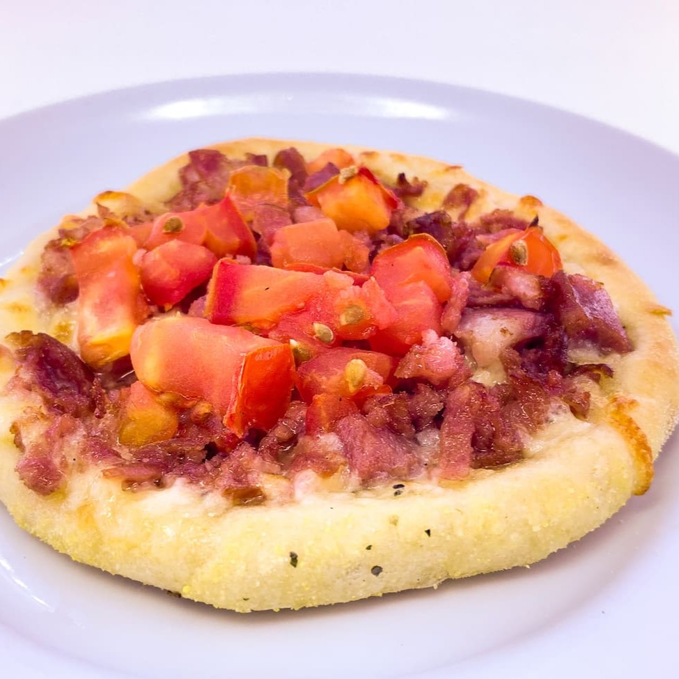 Mussarela, bacon, Catupiry, tomate e orégano