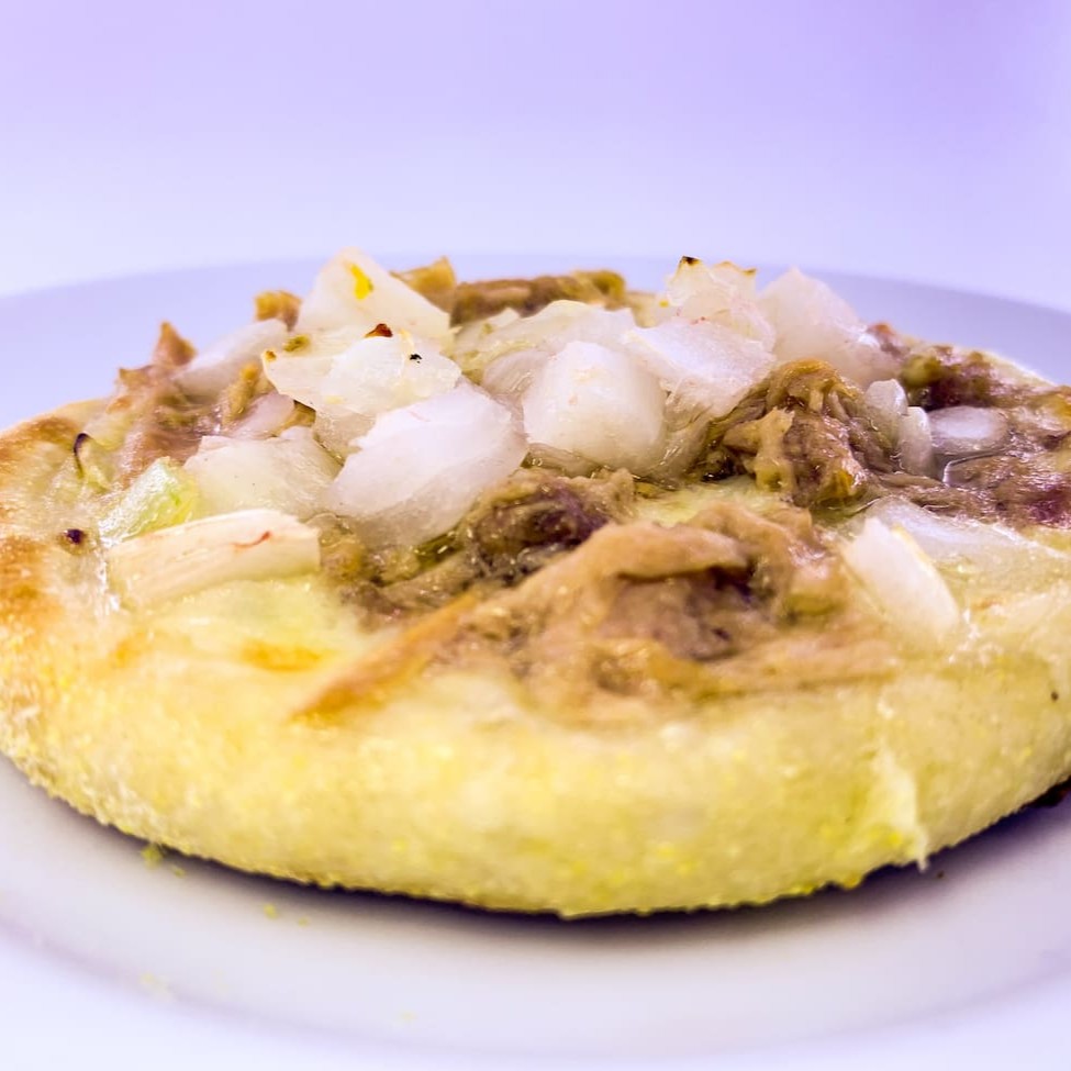 Mussarela, atum e cebola.