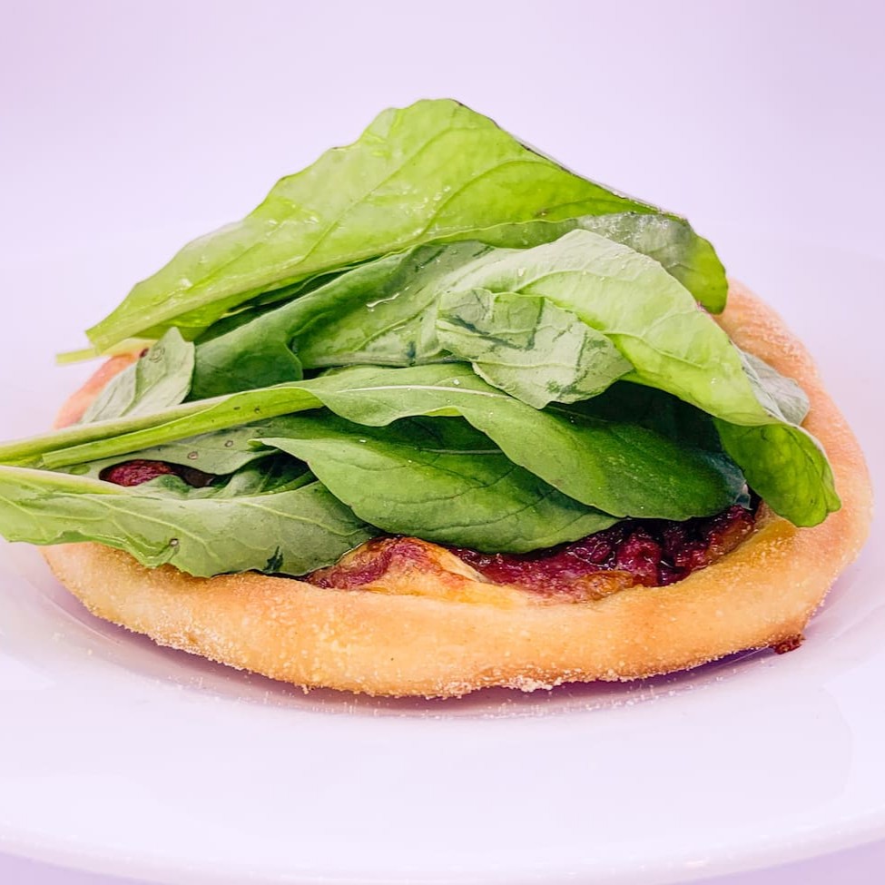 Mussarela, calabresa, tomate seco, e rúcula