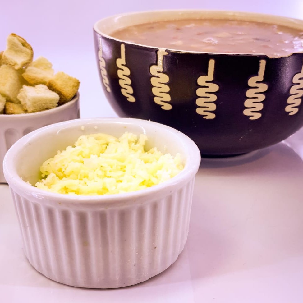 Caldo de feijão preto com bacon e linguiça paio