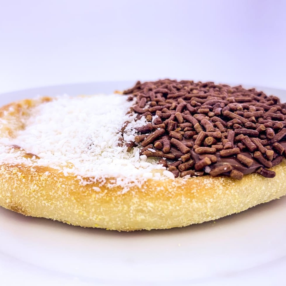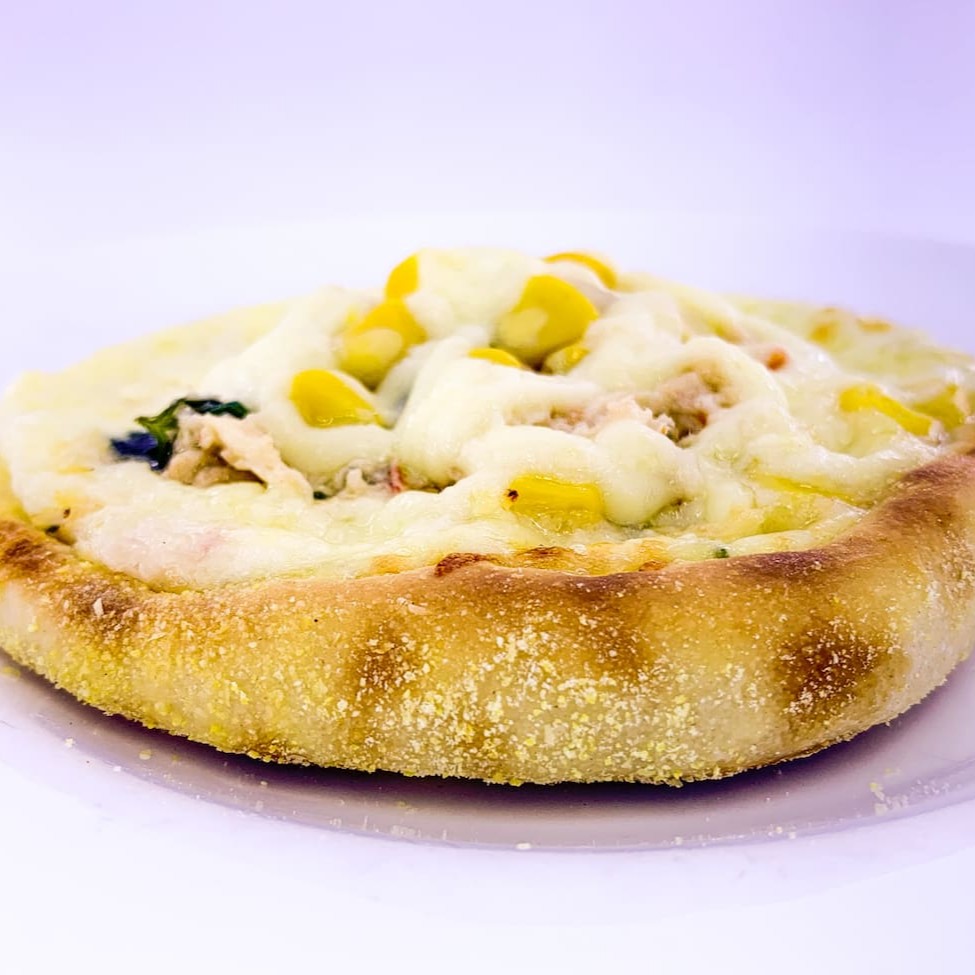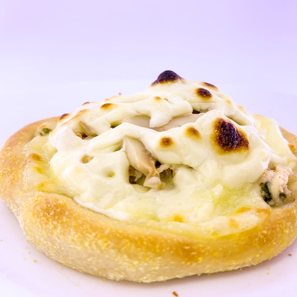 Mussarela, frango desfiado, milho e Catupiry.