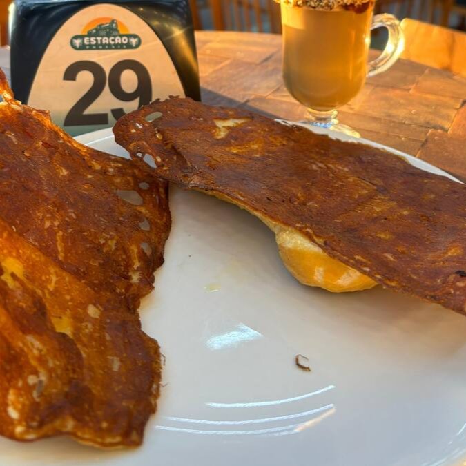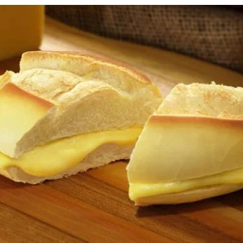 Pão francês fresquinho com requeijão cremoso, prensado na chapa até ficar quentinho e crocante.
