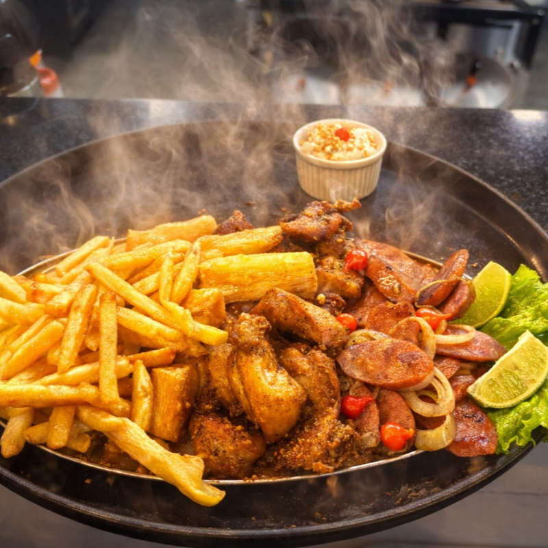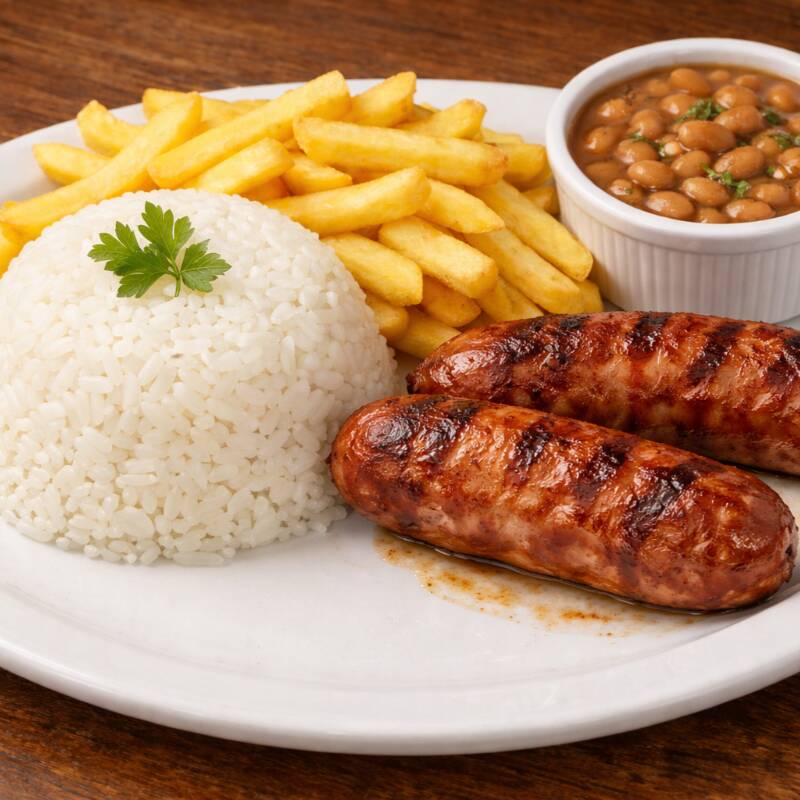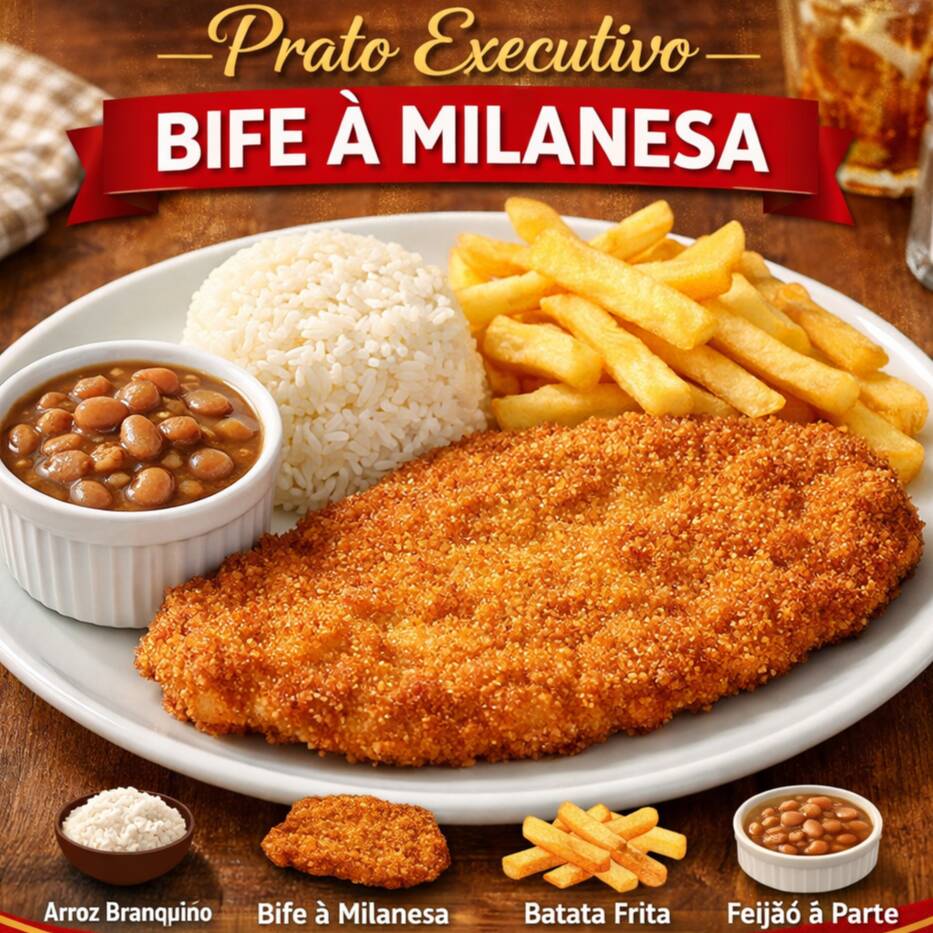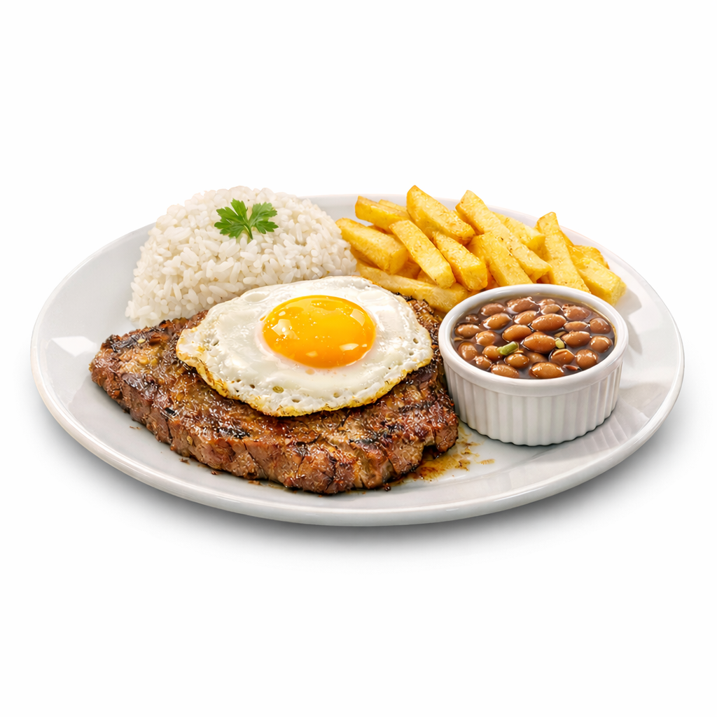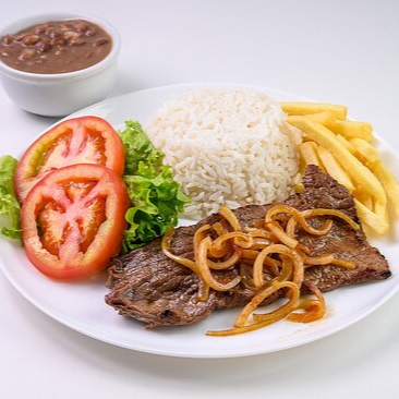 Acompanha arroz, feijão, salada e fritas. Serve 1 pessoa