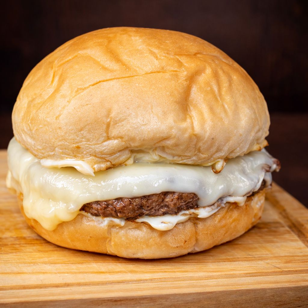Um clássico que não tem erro! Delicioso hambúrguer de carne 90g, coberto com uma fatia generosa de queijo derretido, servido em pão macio.