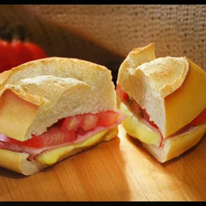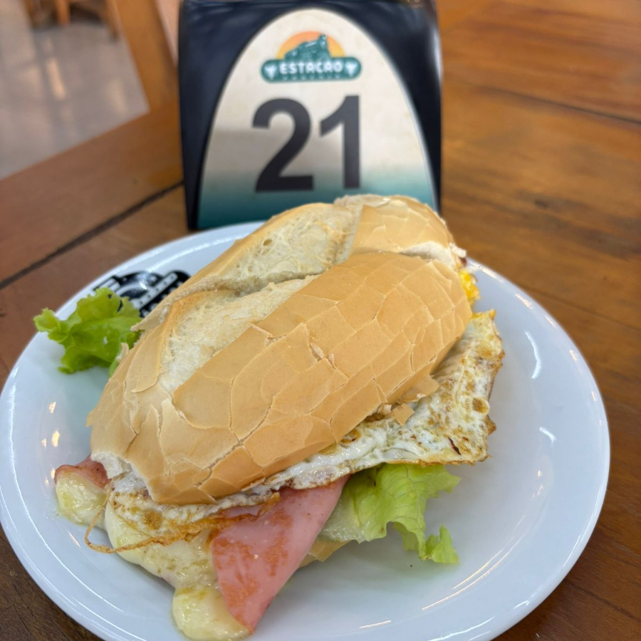 Pão francês, queijo, presunto, tomate, ovo e alface.