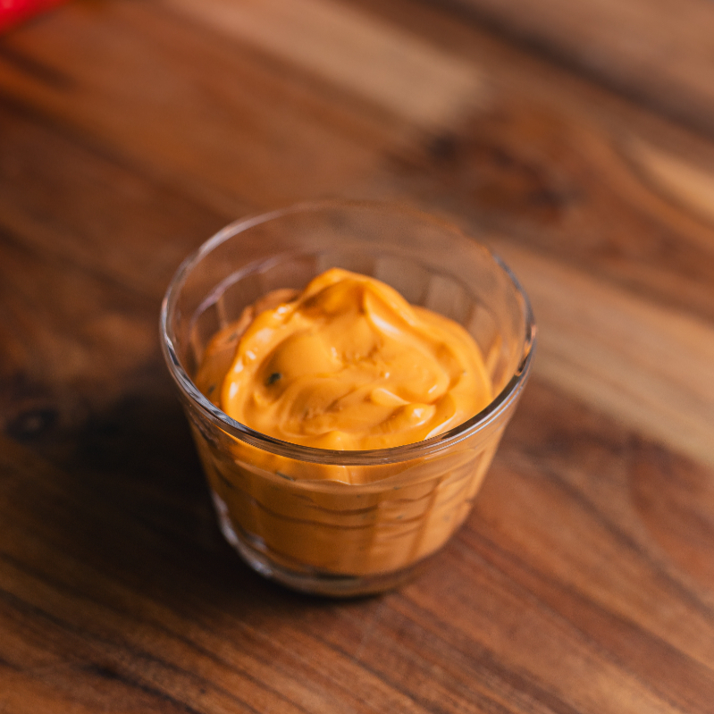 Delicioso molho com maionese, pimenta defumada e outros ingredientes secretos, maravilhoso com batata fritas e aneis de cebola