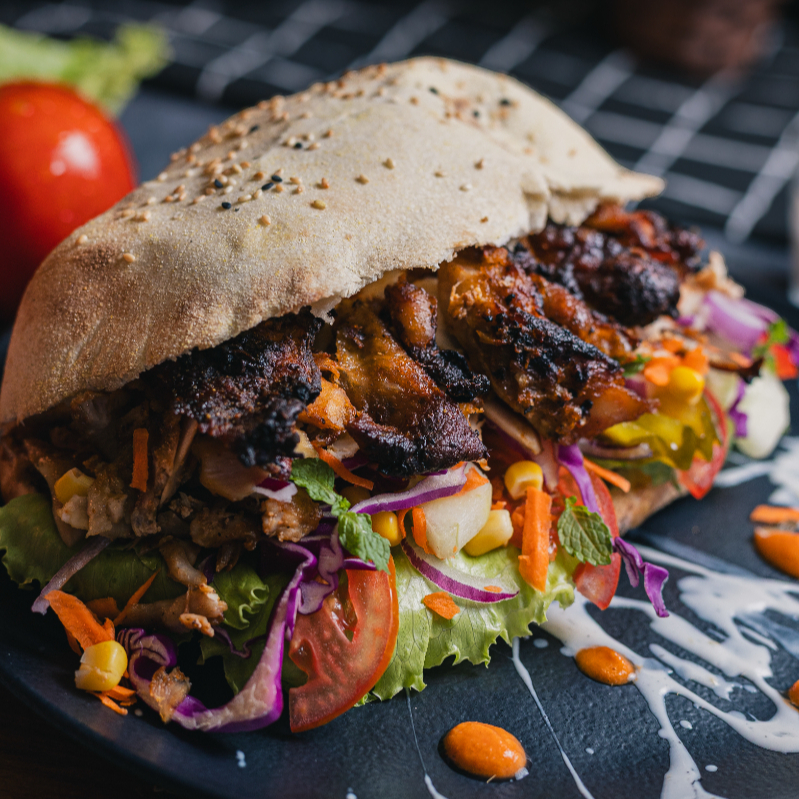 Salada de Alface Americana com o Nosso succulento Kebab de Frango e todos os complementos que voce adora