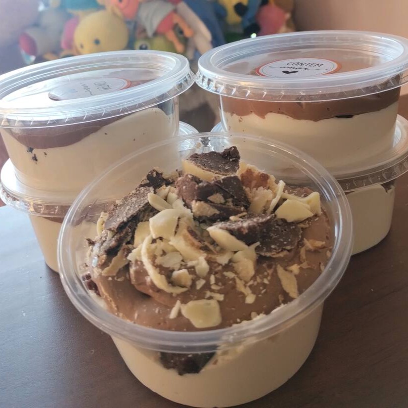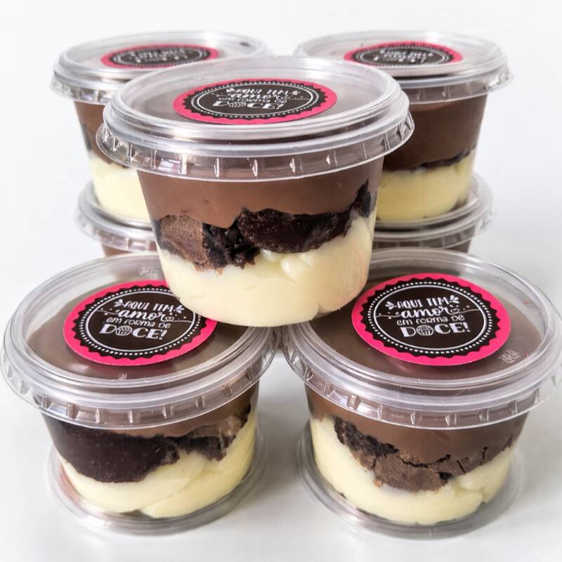 Um copo perfeito para qualquer momento. Todos acompanham Brownie e morango. Caso vc não quiser morango adicionamos mais creme e mousse.