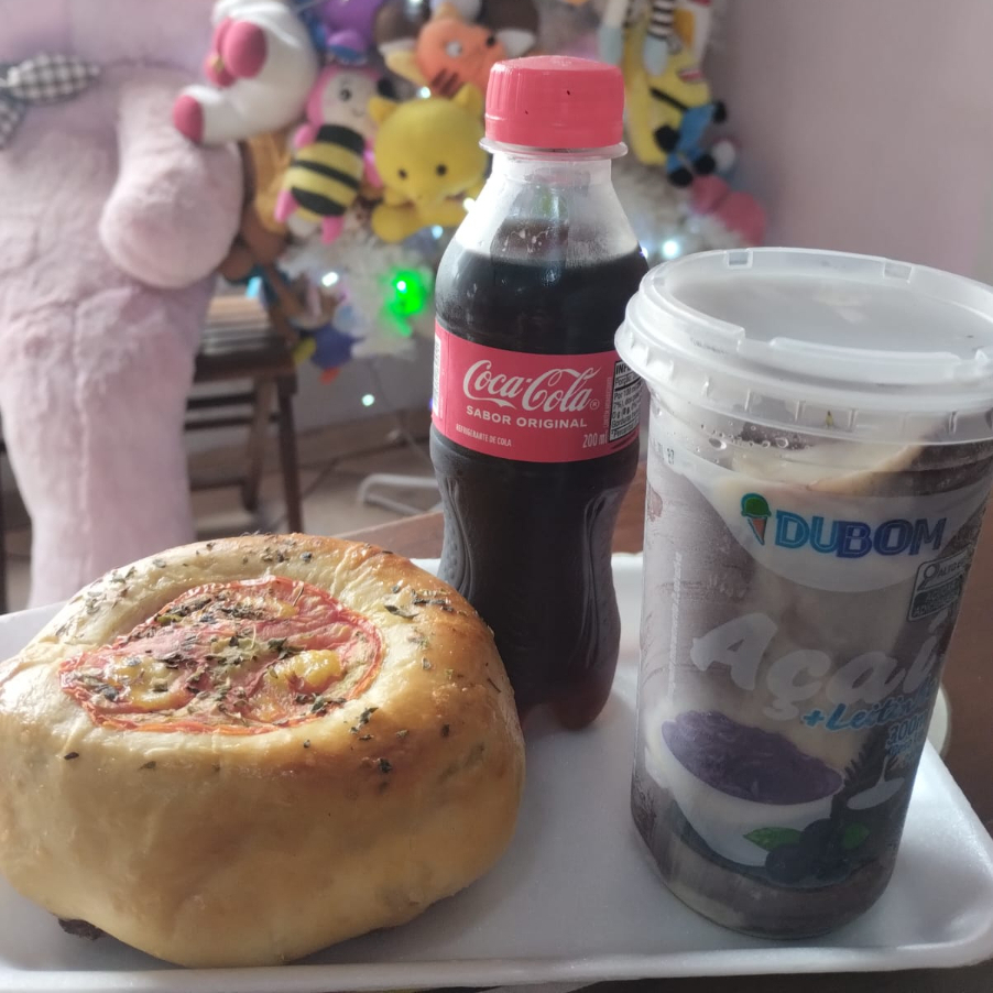 Contém uma empada, um delicioso salgado e um refrigerante de 200 ml