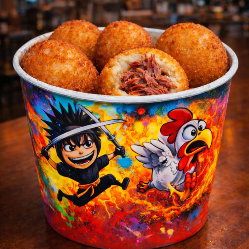 Crocante Que Vicia! Medalhão de frango com bacon(15 unidades) Suculento por dentro, crocante por fora Experimente O Mais Brabo Da Cidade Medalhão de mandioca cremosa envolto em bacon crocante, preparado para surpreender já na primeira mordida. Por fora, uma camada dourada e irresistível; por dentro, a mandioca extremamente macia e cremosa, quase derretendo na boca. O sabor marcante do bacon se combina perfeitamente com a suavidade da mandioca, criando um contraste viciante de texturas e um aroma que abre o apetite na hora. Uma escolha perfeita pra quem quer sair do comum e se entregar a uma experiência simplesmente deliciosa.