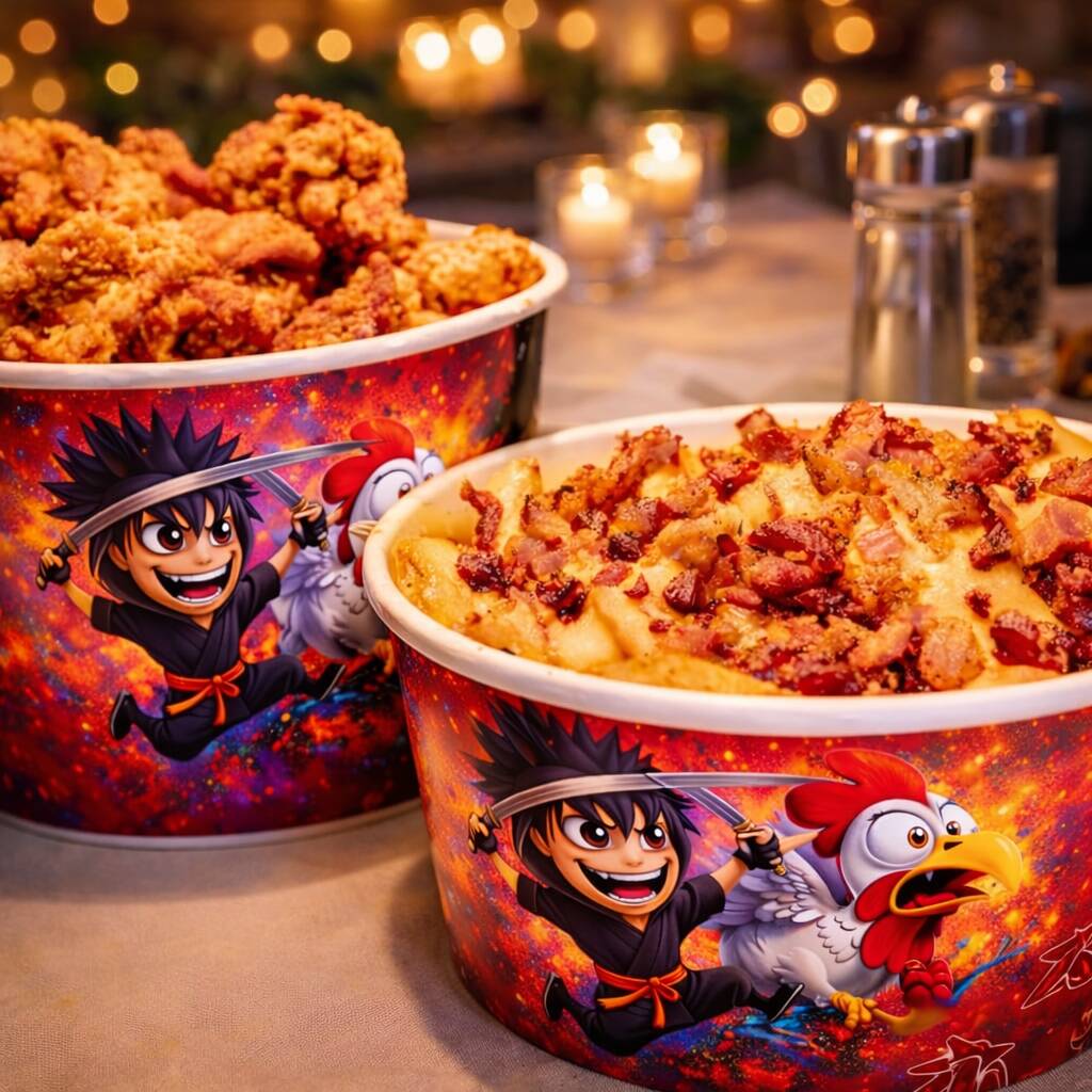 Combo Karague Premium — uma experiência irresistível em cada detalhe. Um generoso balde com 1kg do nosso frango karague, preparado para atingir o equilíbrio perfeito entre crocância e suculência. Cada pedaço é dourado na medida certa, com uma casquinha irresistível por fora e um interior macio e cheio de sabor. Acompanha 1kg de batata rústica, crocante por fora e macia por dentro, finalizada com um cremoso molho de cheddar e bacon picado, que traz um toque intenso e defumado simplesmente irresistível. E para completar, o combo inclui 2 molhos especiais, perfeitos para mergulhar e elevar ainda mais cada mordida. Uma combinação generosa, marcante e feita para quem quer viver uma experiência completa — daquelas que dão vontade de repetir.