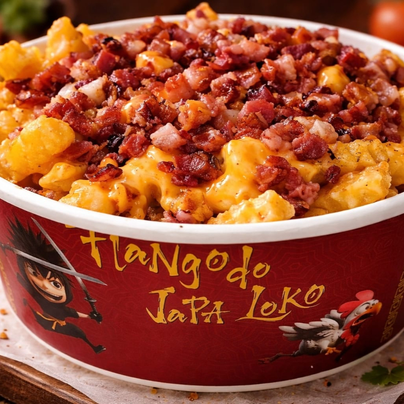 Não deixe de experimentar a irresistível 'Batata Rústica com creme de Cheddar e Bacon - 1kg' no nosso cardápio 'Porções Do Japa Loko'. Este prato apresenta batatas rústicas, perfeitamente crocantes e douradas, generosamente cobertas com um suculento creme de cheddar, realçado pelo sabor robusto de pedaços de bacon picado. São 800g de pura tentação que vão agradar ao paladar mais exigente. Venha para o Flango Do Japa Loko e saboreie esta delícia!